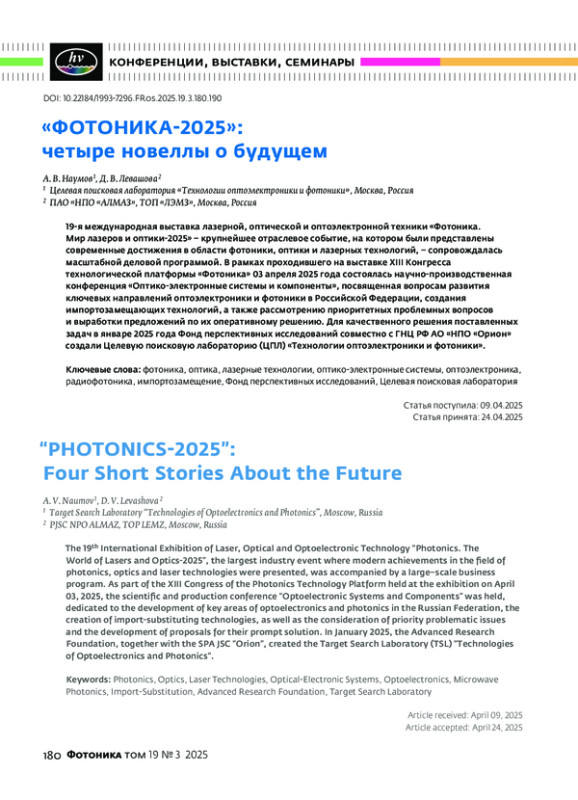 Статья: «ФОТОНИКА‑2025»: четыре новеллы о будущем