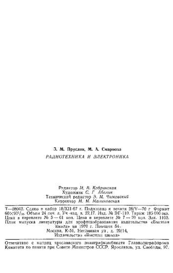 Радиотехника и электроника: Учебник для проф.-техн. училищ. Изд. 3-е, испр. — М.: Высшая школа, 1970. — 384 с. с ил. - Каталог SCI