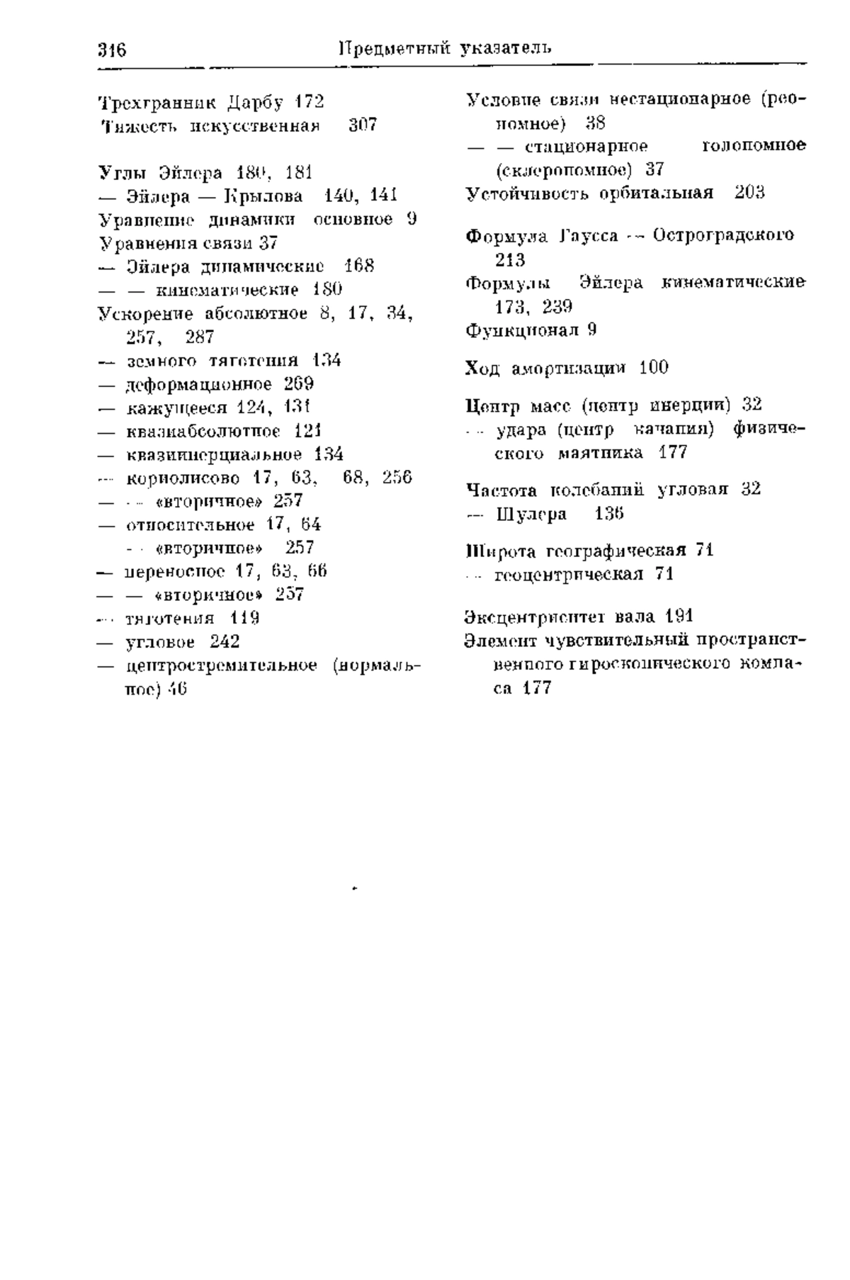 Приводится число аналитический вывод сложных формул кинематики и динамики для абсолютно твердого тела, в частности для линий вращения, их положения относительно тела, а также для моментов инерции, гироскопов и твердых тел аэродинамики.
