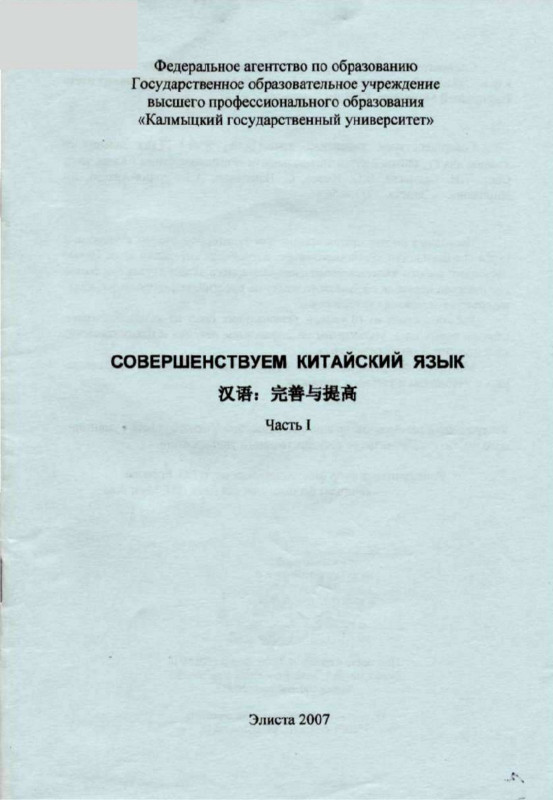 Совершенствуем китайский язык (ХИ: Е ЖЫЗЕМ): Задания по чтению для студентов 2 курса специальности «Регионоведение» / Калм. ун-т; Сост. Т.И. Бадмаева, В.О. Имеев, С. Намжавин, А.Б. Эрдни-Араева, Ли Линизюнь. — Элиста, 2007. — 56 с.