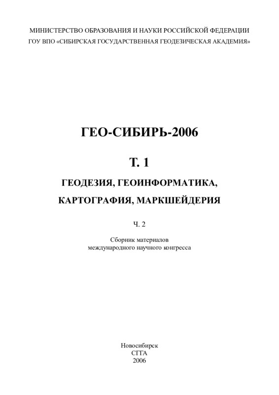 ГЕО-Сибирь-2006. Т. 1. Геодезия, геоинформатика, картография, маркшейдерия. Ч. 2: сб. материалов междунар. научн. конгресса «ГЕО-Сибирь-2006», 24 - 28 апреля 2006 г., Новосибирск. – Новосибирск: СГГА, 2006. – 368 с.