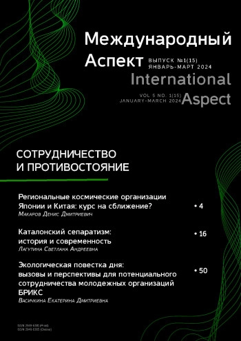 Молодежное сотрудничество стран БРИКС в сфере экологии — тема, не получившая достаточного освещения в современной российской и зарубежной науке. Целью данной статьи является выявление основных проблем и перспектив молодежного сотрудничества в сфере экологии на основе общей характеристики этого сотрудничества и анализа современных тенденций взаимодействия молодежных организаций стран БРИКС.