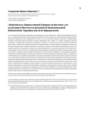 В статье представлен обзор документов, отложившихся в деле «Переписка о Православной Церкви на Востоке» из фонда Канцелярии обер-прокурора Святейшего синода Института рукописей Национальной библиотеки Украины им. В. И. Вернадского (Ф. XIII, ед. хр. 297). В аналитических записках и официальных письмах, хронологический диапазон которых охватывает 1840-е–1880-е гг., нашли отражение вопросы, связанные с выработкой концепции российского духовного и политического присутствия на православном востоке, проблемы взаимоотношений Российской церкви с православными патриархатами Востока (Константинопольским и Иерусалимским), отношений Св. Синода и российских дипломатов к греко-болгарскому кризису, следствием которого стало распространение на Балканах деятельности болгаро-униатской церкви и мн. др. В связи с активизацией миссионерского присутствия Римско-католической и протестантских церквей особое внимание российских экспертов было обращено на межконфессиональные отношения на православном востоке. Как показывает анализ архивных документов, одна из главных целей большей части российских церковных и светских дипломатов, авторов экспертных записок, состояла в том, чтобы убедить правительство России в необходимости укрепления церковного присутствия России в Османской империи как важного фактора ее политического влияния. Высказывались и противоположные мнения, предполагавшие отказ России от политических интересов на христианском востоке при сохранении традиционной поддержки православных восточных церквей. Несмотря на разрозненность документов, относящихся к различным временным периодам и историческим сюжетам, они служат ценным вспомогательным источником, восполняющим уже известные сведения из истории межцерковных и межконфессиональных отношений, что способствует более полной и объективной реконструкции церковного присутствия России на христианском востоке.