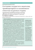 Цель исследования. Изучить состояние основных и косвенных маркёров эндотелиальной функции (десквамированных эндотелиальных клеток, фактора Виллебранда, фибриногена, гомоцистеина, показателей сосудисто-тромбоцитарного и плазменного гемостаза) на разных стадиях хронической болезни почек.