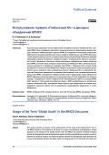 В данной статье представлен анализ особенностей употребления термина «Глобальный Юг» в дискурсе БРИКС. Цель исследования заключается в оценке возможности формирования единого подхода к концепции «Глобального Юга» в рамках БРИКС.