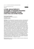 В статье рассматривается ряд вопросов, связанных с цивилизационной ориентацией русского государства на протяжении истории своего существования. Предлагается увидеть, что в своей культуре и политике Россия исходила не только из международной практики, но и опиралась на опыт Византийской империи. Византия была единственным государством, чей опыт строительства государства и его выживания в мультикультурном и полиэтничном евразийском мире могла в средневековый период освоить Россия. Он помог ей не только выстроить свою государственную историю, но и заложить основы существования уникальной цивилизации. Есть возможность увидеть в термине «византинизм» («византизм») и такое значение, как «цивилизационный синтез», «материнское начало», которое ушедшая византийская цивилизация передала своей «любимой дочери» — России, это «заветы», с помощью которых и мать, и дочь жили и живут. Россия подхватила эстафету Византии в этом смысле — начала строить свою цивилизацию, продолжая ее прерванное цивилизационное строительство. Основа для этого была и сохраняется до сих пор. Все еще остается достаточное политическое пространство, существует и самодостаточное экономическое пространство, которое образовалось в результате противостояния вестернизаций и истернизаций. Есть и необходимая культурная платформа: христианская парадигма до сих пор в той или иной форме дает основные мироустроительные и цивилизационные идеи. Споры о направлении развития России сопровождают всю ее историю и потому, что она находилась между двумя крупнейшими цивилизациями — Европейской и Степной