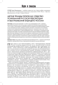 В статье автор показывает, что смысл и суть происходивших в 1917 г. революционных событий позволяет понять метод триады, разработанный великим немецким философом Г. В. Ф. Гегелем. Тезисом является ослабление авторитета руководства Российской империи и натиск на него оппозиционных партий, желавших установить свою власть. Антитезисом стало неприятие основной частью народа революционной февральской власти и погружение страны в хаос. Синтез заключается в переходе власти к самой периферийной партии - большевикам, установившим новый революционный порядок. В условиях специальной военной операции необходим компромисс между двумя флангами современного патриотического движения, разделенными отношением к российской революции. Неприятие Февраля (антитезис) способно стать основой для перехода к двухпартийной системе, где будет возможность положительного развития собственных идей. Это создаст основу для выработки общенациональной идеологии и окончательного утверждения самобытной русской цивилизации.